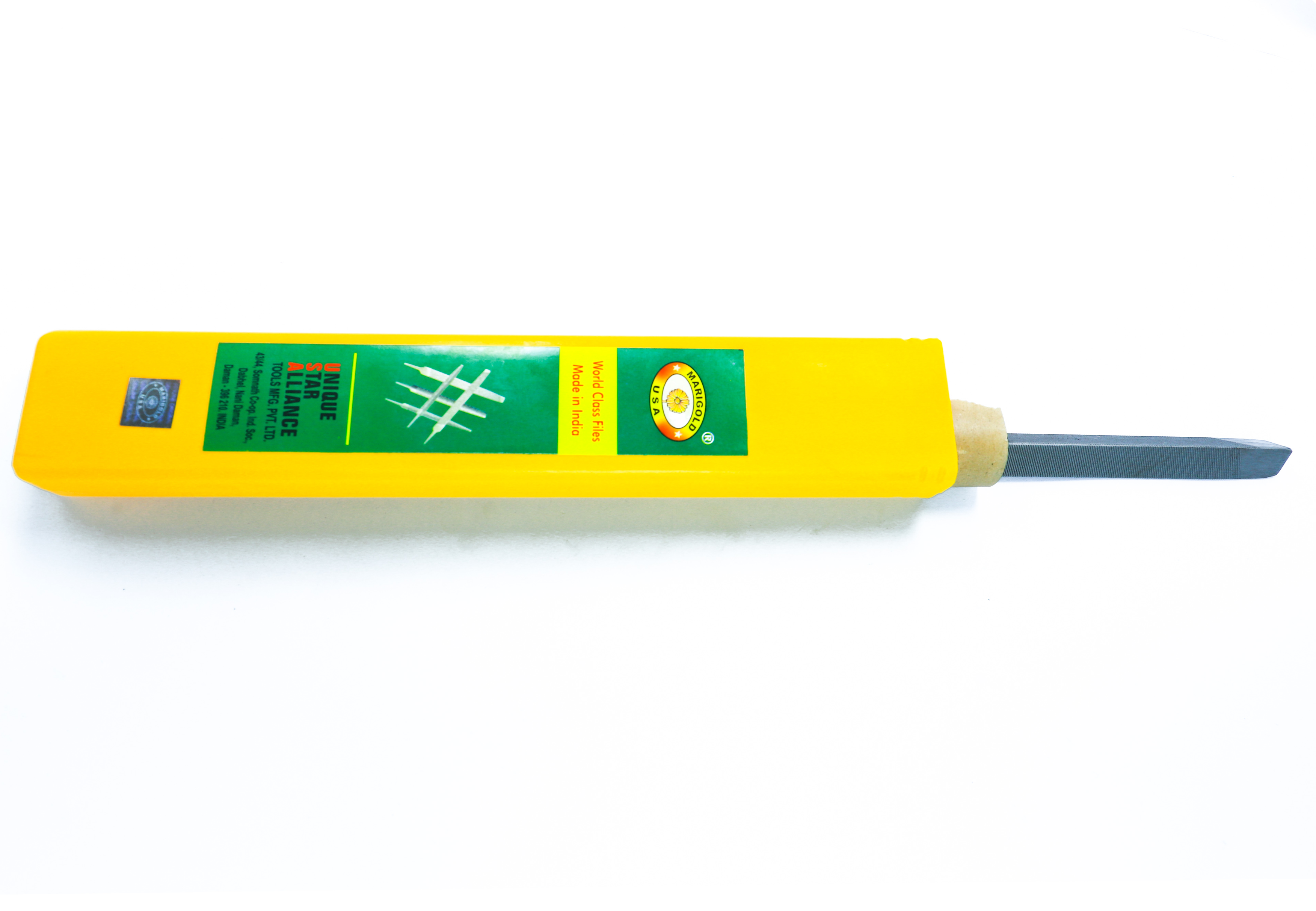 Three Square file with tang, single cut on all sides, all three edges cut, used for sharpening of saws.